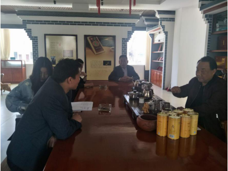 江湖行旅游网总经理吴卫青正在与永巨茶叶有限公司负责人洽谈