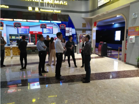 岳阳市文化产业和文化市场工作调研组在白云湖影城调研。