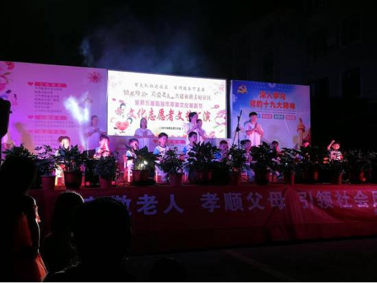 第五届临湘市草根文化旅游节文化志愿者文艺汇演活动现场。