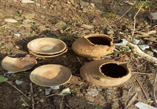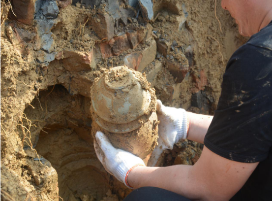 5月6日至15日,临湘市文管所获悉该市境内桃林菊花博览园即将开工建设。于是,立马派员前往该博览园工程项目部摸排情况,经调查了解,发现该项目位于桃林镇畈上村,占地1300亩,基本为水田和旱地,涵盖畈一、畈二、畈三、畈四四个村民小组,系临湘市市委、市政府2018年重点工程项目,工程开工在即。为积极介入,使有可能发现的文物得到妥善、有效的保护,经与项目部协商同意,文管所组织专业力量对拟建工地进行了实地勘探排查。在排查过程中,发现墓葬21处,全部为单室砖室墓。根据墓形、墓砖和陪葬器的特征,初步判断这些墓葬为明代墓葬。文管所当即决定组织抢救性发掘,发掘过程中,出土了一批陪葬器:含魂瓶三套(带盖),魂坛一只、魂罐两只(残)、碗12只(三只残)器物整体造型圆润、简洁却不失厚重大气。经初步鉴定,这些刚出土陪葬器统称为冥器,也称“明器”(有些器物带明显地方特征,通过研究分析发现与明清时期,南方的丧葬常采用坛和罐盛放主人骨骸的习俗高度吻合)。通过发掘后,工作人员还发现,此次出土的文物多与社会民众的生活紧密相连,这有利于更科学地研究当地当时社会的发展状况,同时也有助于专业人员、文物爱好者深入研究明代的历史文化、科学、艺术等。