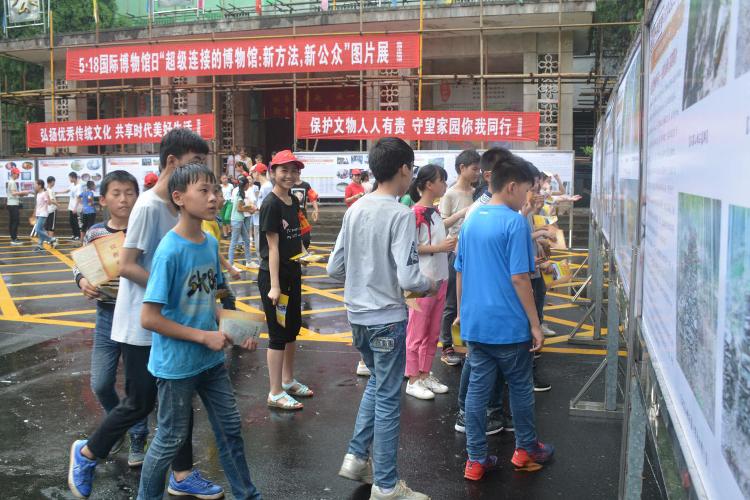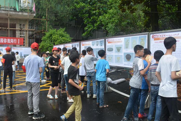 当日,在忠防镇中学活动现场悬挂横幅标语3条,摆放大型展板18块,文物知识宣传资料手册300份,并组织了10余名文化旅游志愿者,在现场发放宣传单和对展板展览内容进行讲解。本次展览活动中的大型图文展,详细介绍了临湘市第三次全国文物普查的丰硕成果,包涵各级文物保护单位和馆藏珍贵文物的概况。内容丰富多彩、图文并茂,充分展现了我市地域特色文化和浓厚的历史文化。