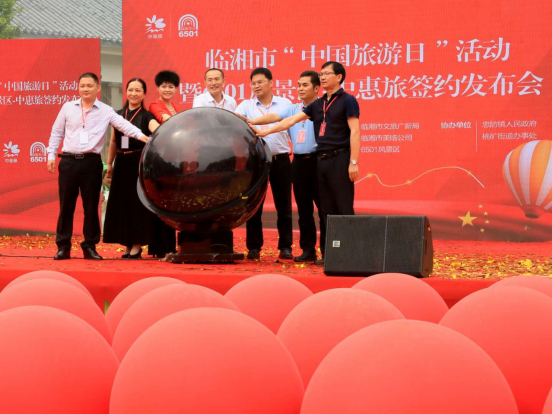 当天,6501风景区与中惠旅智慧景区管理股份有限公司达成景区建设及开发战略合作协议,并以“高空热气球”与“剪彩”相结合的活动形式,为现场参会嘉宾呈现了一场独特、空前的签约仪式。副市长熊丽代表临湘市委、市政府,和中惠旅负责人乘坐在垂直高度50米的热气球上为本次签约剪彩,尽览6501景区风貌,也昭示着6501风景区和临湘全域旅游的蒸蒸日上。本次活动获得了新华社,中国日报,中央人民广播电台,中国新闻社,人民网,大公报、腾讯、新浪、网易、ZAKER、湖南日报,新湖南,潇湘晨报、湖南都市,湖南经视等数十家国内外新闻媒体参与报道。