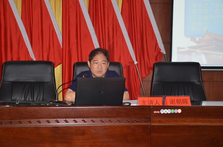 岳阳市委讲师团成员、岳阳市委宣传部理教科科长谢朝晖以《落实全面从严治党,打造政治建设过硬的党员干部队伍》为题,为大家授课。