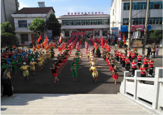 (张日平 姜青)为纪念中国共产党建党97周年,践行十九大精神,回顾党的光辉历史,讴歌党的丰功伟绩,激发基层党员奋发向上、开拓进取的热情,展现基层党员奋发向上的精神面貌。7月4日,2018“欢乐潇湘•古韵茶乡”文化旅游节 纪念中国共产党成立97周年暨临湘市大型广场舞蹈展演活动在临湘市聂市镇隆重举行。临湘市文旅广新局分管领导廖琼、市文联副主席陈政印、聂市镇党委书记郑新宇、镇长张富贵等领导及2200多名观众到场观看展演活动。