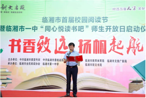 (易斌贝)九月的湘北大地硕果累累,金秋的临湘一中校园书香浓郁。9月1日,开学第一天上午,由临湘市新文书苑分馆创办的“同心悦读书吧”开放日在市一中校园内隆重举行。
