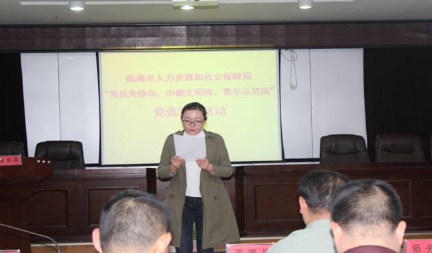 11月1日下午,市人社局组织开展“党员先锋岗、巾帼文明岗、青年示范岗”评选竞选演讲活动。25名来自人社系统不同的工作岗位“党员先锋岗、巾帼文明岗、青年示范岗”候选人现场激情演讲,充分宣讲个人工作实绩和对先进性的感悟。