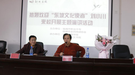 (易斌贝)为了全面丰富广大青少年学生的课余文化生活,临湘市图书馆携分馆新文书苑11月份开展了“临湘大讲堂”活动,邀请了当代著名作家刘小川先生先后走进临湘市三中、临湘市五中及临湘市职业中专,开展了“刘小川品中国文人”专题讲座,约1500名师生现场聆听了讲座。