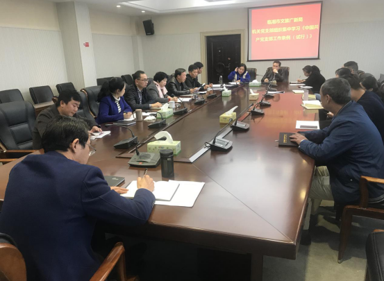 (何莹莹)11月29日上午,局机关党支部组织集中学习《中国共产党支部工作条例(试行)》和意识形态工作相关文件精神,党组书记、局长陆如勇及全体机关支部党员参加了学习会。