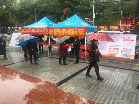 城市管理行政执法局组织干部职工积极开展“宪法宣传周”活动,12月3日组织干部职工集中学习;12月6日冒雨开展《中华人民共和国宪法》、全域禁放暨城市管理法律法规户外宣传活动,共悬挂横幅2条、设宣传展板2块,散发宣传资料2万份,获得了领导和市民的一致好评。