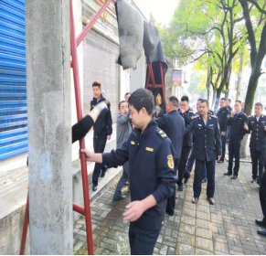 为强化整治效果,执法队伍从三角坪汽车站开始步行推进,将城区主要街道两侧进行了“扫描式”清理,发现堆放杂物、出店经营、当街作业、乱立标牌等影响市容环境问题即时处置。参与行动队员将乱贴画的广告标语动手清理,搬运乱摆放的伞墩、水泥块、破旧沙发、柜和“泡沫箱种菜”等杂物,劝导挑担菜贩入市经营,强制暂扣多次通知整改仍出店摆放的炉具、水果、桌椅、摩托等。