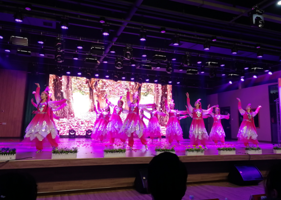 演出在激情四射的舞蹈《美好未来新生活》中拉开帷幕,曳步舞《中国红》节奏欢快,被一群青春靓丽的少女们演绎得十分养眼,勾起观众对青春年少美好的回忆;群舞《晨曦中的玫瑰》清新典雅,带给人们一种热情奔放的感觉;文艺汇演精彩纷呈,高潮迭起,节目来自生活,高于生活,集中展示了蓬勃向上、奋发进取的良好精神风貌。一首首动听的歌曲沁人心脾;一个个炫丽的舞蹈轻盈优美;小品让人捧腹大笑,耐人寻味;异域风情舞婀娜多姿、轻快灵动,赢得阵阵掌声。最后,活动在《友谊大联欢》中徐徐落下帷幕。