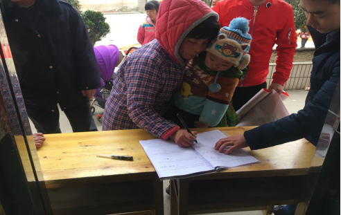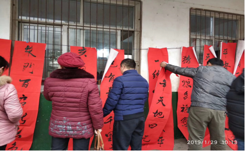 当天的活动一开始就吸引了许多附近群众的关注,红彤彤的春联让教室里一片年味十足。书法协会的方敦汗、李德保、方生利、汪文罗、吴康亮等老党员书法骨干在大家的围观下挥毫疾书,一幅幅祈福祝喜、遒劲有力的春联作品纷纷展现在人们面前。在年轻党员干部的现场组织下,领春联的群众在写着“自觉遵守禁止燃放烟花爆竹规定,共创宁静、安全、清新的桃林环境......”的承诺本上签下了自己的名字,并洋溢着喜庆的笑容取走满意的春联。