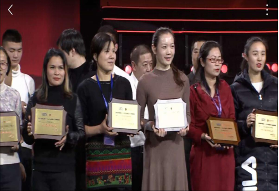 青少年活动中心主任晏利君在接受颁奖。