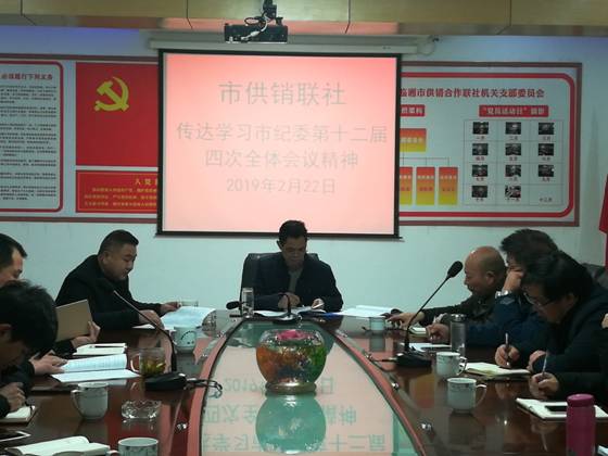 2月22日,市供销联社召开机关全体干部职工大会,学习贯彻市委农村工作暨市镇村负责干部大会以及市纪委第十二届四中全会精神,部署动员下阶段工作。