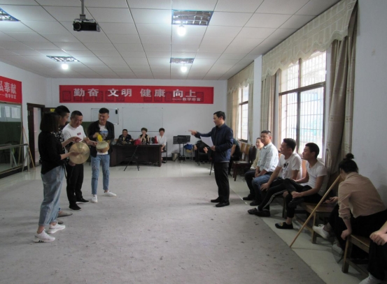 (张日平 沈云风)“扫黑除恶定三年,治标治本治根源,决不放过漏网鱼,出重拳。”4月26日上午,从临湘市花鼓戏剧团排练厅里不时飘出一阵阵演员道白的声音,走近一看,原来由该团文化志愿者创作的三句半《扫黑除恶扬清风》正在这里紧张排练。