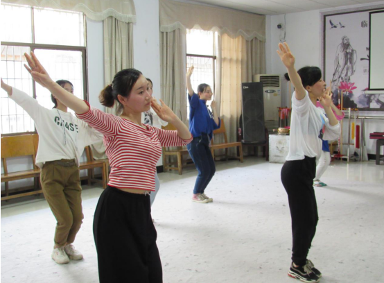 参与下乡巡回演出的舞蹈节目正在参加排练