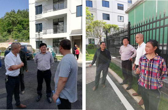 李四雄局长与云湖街道扶贫干部一起商量搬迁后的就业问题,通过安置点周边产业基地,让帮扶对象有稳定收入。