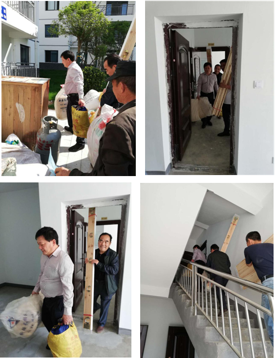 5月11日一大早,市生态环境局临湘分局局长李四雄率扶贫干部,赶到兆邦大道异地搬迁贫困户安置小区,帮助帮扶对象秦站文、谢雪初搬家。