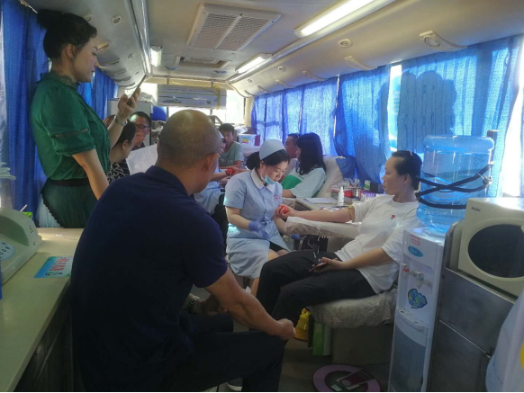 经过填表、体检、等候、抽血等多个环节后,早晨7点30分,在献血车上,街道办事处领导权志伟、李子龙、李勇军等率先献血。