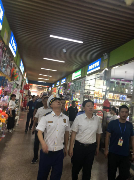 (廖星辉一行对大市场进行“地毯式”安全检查)