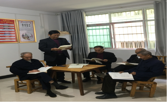 当前,桃林镇“不忘初心、牢记使命”主题教育开展的如火如荼,各村(社区)党组织党员也都学习正酣,清泉社区老龄党支部的老党员同志们学习也是热情高涨。平时社区用于老年人下棋、打牌、写字、品茶、看电视等休闲娱乐活动的特色功能室--老年日间照料中心如今成了社区老党员开展“不忘初心、牢记使命”主题教育的学习班了。