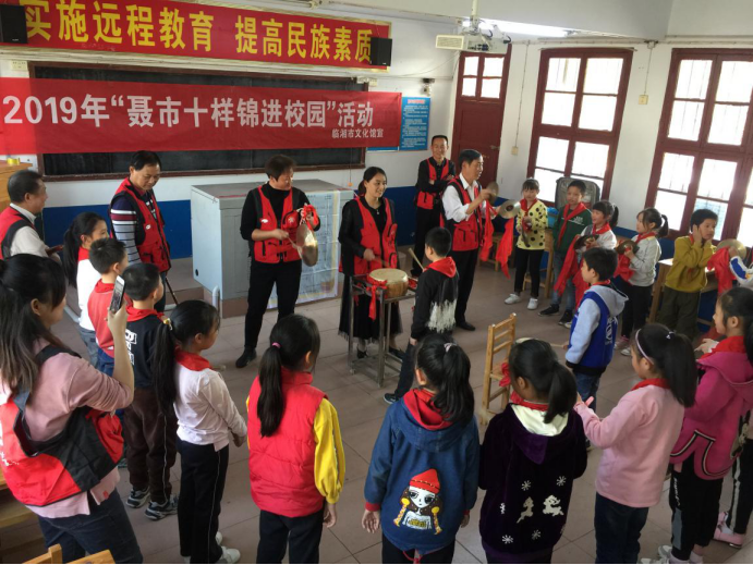 (通讯员 刘 莹 骆林华)为使中小学生深刻感受优秀传统文化魅力,搞好非遗传承。10月31日,临湘市文化馆联合“聂市十样锦”俱乐部在聂市中心小学开展非遗项目——“聂市十样锦”进校园活动,受到该校师生欢迎。传承人方国良、何九牛等几位老师走进镇小的课堂,为学生们介绍十样锦演奏时使用的乐器,演示了技艺精湛的绝活,耐心地解答了学生们提出的问题,与孩子们互动交流,并指导学生们进行动手体验,现场气氛十分活跃。