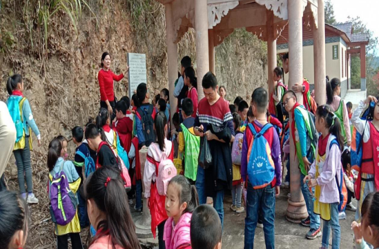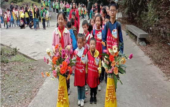 (李 勇)为深入贯彻十九大和习近平总书记重要讲话精神,缅怀革命英烈,继承和发扬老一辈革命家的优良传统,深入开展感恩教育和革命传统教育,激发学生爱国主义情感,引导学生树立正确的世界观人生观和价值观,提高他们的综合素质,锻造学生的自主能力,进一步增强学生的团结精神。11月23日,临湘市青少年活动中心组织120名青少年学生来到该市爱国主义教育基地——棋子山,开展“缅怀英烈,弘扬爱国精神”为主题的社会研学实践活动。在“南下工作队进驻临湘纪念碑”前,同学们认真聆听讲解员讲解解放前夕的故事,为成立临湘县,我党地下工作人员穿过敌人的重重关卡,冒着生命危险从河南进驻临湘,在复杂的形势下组织开展工作。在“棋子山之战”烈士陵墓,同学们为抗日英烈敬献了花篮,红领巾代表向英烈献词,在烈士碑下举起右手,集体庄严宣誓,并高唱“义勇军进行曲”,寄托哀思,表达对英烈的崇敬之情。来到山顶,大家围坐在“怀母亭”前,感悟母亲的养育之恩,珍惜生活的来之不易。中午,同学们开心地将自己精心准备的食材如火腿肠、玉米、茄子、黄瓜进行烧烤,绘画的同学利用树叶制作自己喜欢的图案,下午3点,才艺展演将活动推向了高潮。