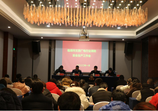 (陈玲英)为进一步切实做好我市文化旅游市场年末岁初消防安全产工作,贯彻落实省、市消防安全生产工作会及有关文件精神,确保“两节”“两会”期间市场的稳定、有序。1月13日,市文化市场综合执法大队在华银华美达广场酒店三楼组织召开全市文化旅游市场消防安全生产工作会。市消防大队副参谋长杨先荣、市文旅广电局副局长丁清利、局市场股、局直二级机构分管安全生产负责人、网吧和娱乐场所业主等近120人参加会议,会议由文化市场综合执法大队教导员吴国良主持。