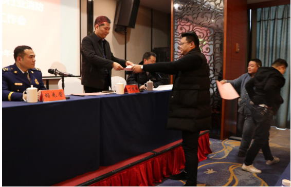 会上,首先观看消防安全生产警示片,传达学习了上级有关安全生产工作文件精神。随后,市消防大队副参谋长杨先荣对全市文化旅游市场经营业主进行消防安全知识培训,结合文化旅游市场的实际情况现场讲解灭火器、防护罩等消防器材的使用。让参会人员深刻认识到公共场所消防安全的必要性和重要性,进一步提高了消防安全防范意识。