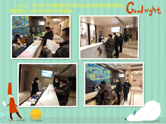 根据市突发公共卫生事件应急指挥部要求,元月26日,临湘市文旅广电局认真做好全局新型冠状病毒肺炎重点人群排查及全系统疫情防控工作,9:30局党组书记、局长陆如勇组织局机关相关股室、局直二级机构主要负责人召开第三次全局新型冠状病毒肺炎疫情防控领导小组成员工作会议,传达了上级会议精神,对下步工作进行了部署。随后,市文旅广电局党组书记局长陆如勇率员不间断督查五尖山、浮标小镇、6501景区闭园情况,督查了中发大酒店、富临大酒2个星级酒店、龙行国旅和已停运的旅行社旅游车队,并对已关闭的大咖等网吧进行了督查、还查看了相关场所是否进行了消毒,并要求工作人员必须戴口罩。