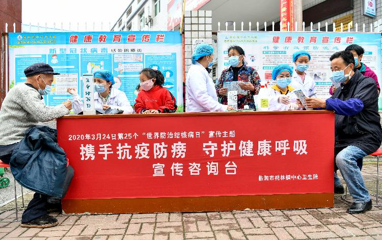 3月23日,临湘市桃林镇中心卫生院,开展“世界防治结核病日”主题宣传。今年的3月24日是第25个“世界防治结核病日”,为了搞好这次宣传活动,该院特地制作了一期宣传主题为:“携手抗疫防痨,守护呼吸健康”的宣传栏,悬挂宣传横幅,张贴宣传标语,公卫医师在卫生院前设立结核病宣传咨询台,为过往群众免费发放结核病防控宣传资料,接受群众咨询,告诉居民咳嗽、咳痰2周以上或痰中带血等疑似症状者到市人民医院感染科就诊,国家对确诊病人进行免费治疗。