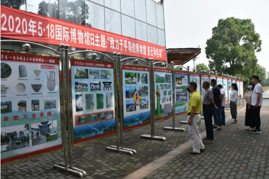 (李 弢)今年是第44个国际博物馆日,其主题是:“致力于平等的博物馆:多元和包容”。旨在为了促进博物馆事业的健康发展,吸引全社会公众对博物馆文博事业的了解、参与和关注,更好地发挥博物馆的社会功能。5月18日,在市民群众比较密集的星河广场出入口,临湘市博物馆组织多名文旅服务志愿者,悬挂宣传横幅3条,摆放大型展板16块,举办了以“观文物,赏历史,古今互鉴”为主题的“万里茶道(湖南段)长江航道上的璀璨明珠——临湘”展览活动,展览现场以图文并茂的形式,突出介绍了临湘演变历史过程中与茶文化有关的文化遗址和文物藏品,彰显出临湘塔的沧桑伟岸、龙窖山茶区的神奇深邃、聂市古镇的风情茶韵、黄盖湖的美丽富饶……本次展览活动旨在宣传“世界动脉,万里茶道”,加快推进临湘(节点)成功申遗步伐,激发市民“爱我临湘,奉献家园”的家国情怀。
