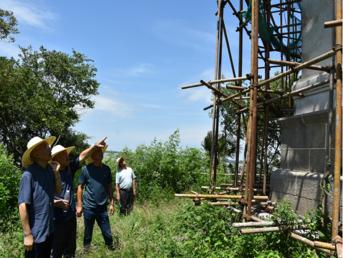 察看修缮中的临湘塔