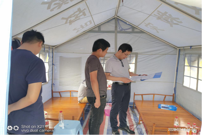 这是7月15日仲夜,陆如勇一行分别不事先通知,来到该局值守的坦渡杨花咀800米防汛责任地段和江南上六型减压井纵向100米横向左右各500米险工险段,突查突击队员巡堤查险情况、查党徽和袖章佩戴情况、查巡查记录……每到一处,他们仔细查询防汛台账后,分别组织队员召开小型督战会,指出问题,严明要求,重申纪律,规范查险操作规程,鼓舞突击队员士气。