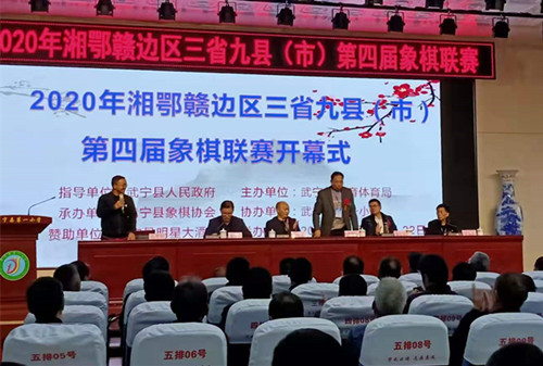 11月20日~23日,2020年湘鄂赣边区三省九县(市)象棋联赛在风景如画的庐山西海之滨江西省武宁县隆重举行。来自湘鄂赣边区三省九县(市)的11支代表队的领队、教练、运动员、象棋协会同仁和象棋爱好者等200余人参与了本次象棋盛会,我市象棋协会一行10人组队参加了比赛。东道主武宁县人民政府、县教体局和九江市象棋协会的领导和嘉宾出席了开幕式,武宁县副县长卢恒墀宣布联赛开赛。