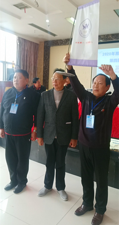 根据大赛组委历届的惯例,该项赛事明年将移师我们临湘市,由我市作为东道主承办。闭幕式上,武宁县象棋协会主席吴永陈向临湘市象棋协会主席邓曙南进行了“会旗”交接,邓主席接过会旗,在主持台前作了简短发言。他向与会人员介绍了临湘市的人文景观和民俗风情概况,热忱欢迎三省九县(市)象棋同仁来临湘做客、旅游观光。邓主席还郑重承诺:明年一定要把这项赛事办得既隆重庄严又轻松愉快!为传承国粹、弘扬中国象棋文化尽一份绵力,同时也为三省九县(市)象棋爱好者们搭建一个切磋棋艺、交流思想、联络友情的大平台。