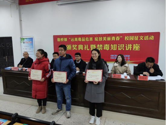 禁毒工作预防为先,预防教育学生为主,临湘市持续推进青少年毒品预防教育深入开展。12月18日下午,詹桥中学、贺畈中学联合举办了“远离毒品危害,绽放美丽青春”校园征文活动颁奖典礼暨禁毒知识讲座。詹桥镇党委书记沈澍、詹桥镇副镇长荣岑、市禁毒办副主任欧杨及两所学校校长参加了活动,活动由詹桥镇常务副镇长王飞主持。