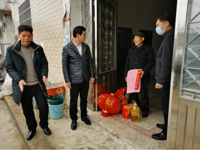 陆如勇一行将春节物质送到建档立卡贫困户方兴红家中