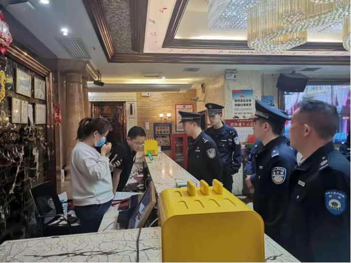 市执法大队执法人员配合公安局派出所对娱乐场所进行检查
