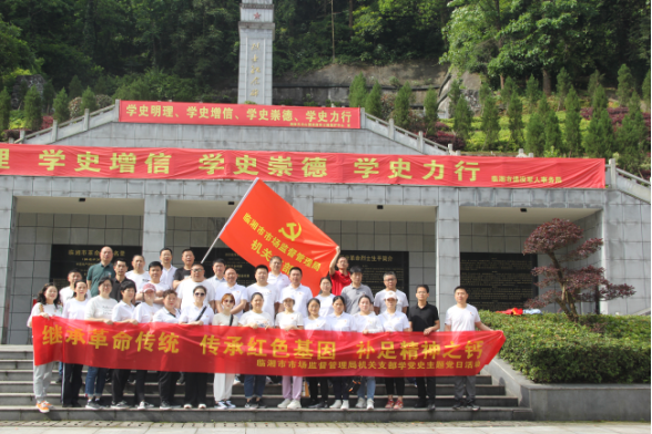 5月8日,临湘市市场监督管理局机关党支部到五尖山烈士陵园开展学党史主题党日和户外登山活动,机关支部全体党员参加活动。
