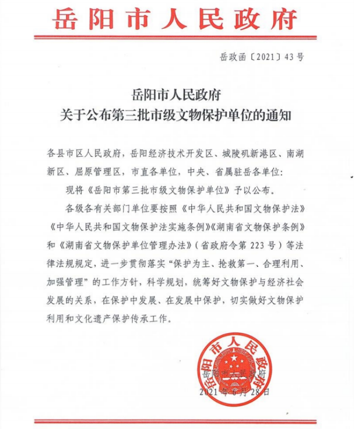 近日,岳阳市人民政府公布了第三批岳阳市级文物保护单位的通知。临湘市文物保护中心在论证和筛选具有临湘古文化特色遗址、古建筑和红色革命文物申报的同时。新晋岳阳市级文物保护单位共3处,中共小源支部旧址、黄金堂古建筑群、小港大屋。