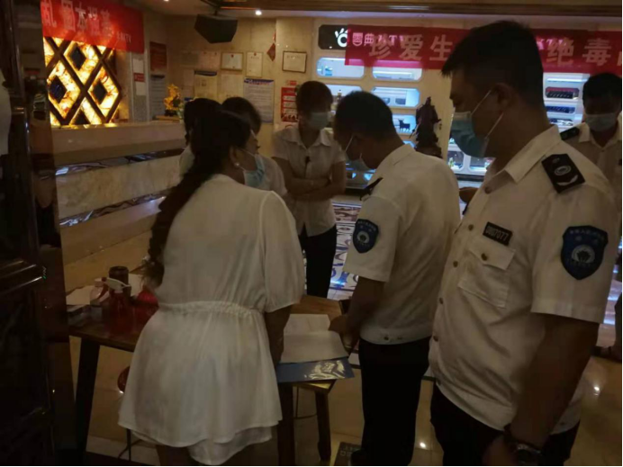 检查中,绝大部分网吧、娱乐经营场所严格按照《重点场所重点单位重点人群新冠肺炎疫情常态化防控相关防护指南》要求落细落实,仅有5家经营场所存在消毒登记台账不规范,消费者佩戴口罩不规范等情况发生,我检查组现场督促并整改到位。同时要求各经营场所在做好常态化疫情防控措施下,切实加强安全防范意识,履行职责,加大场所安全隐患排查和从业人员教育培训,强化疫情防控知识宣传教育,提高复工从业人员自我防护意识和能力,遵守行业法律法规,守法经营。