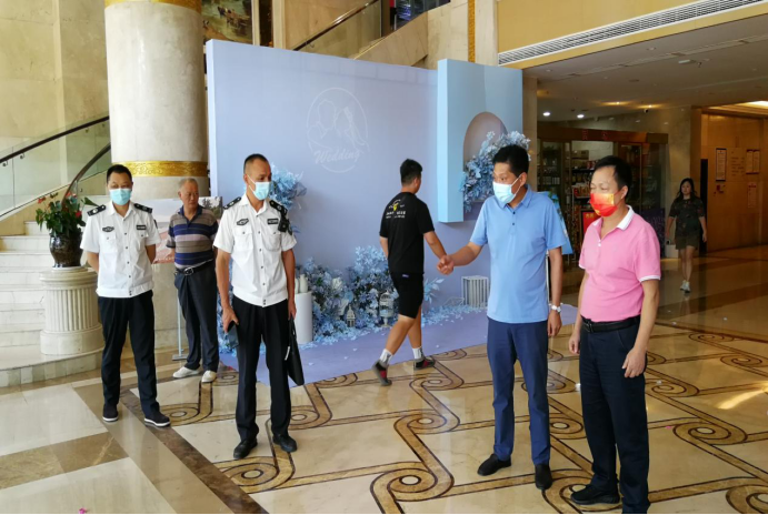 执法人员检查星级宾馆安全生产和疫情防控常态化工作执法人员检查网吧经营场所安全生产和常态化疫情防控台账