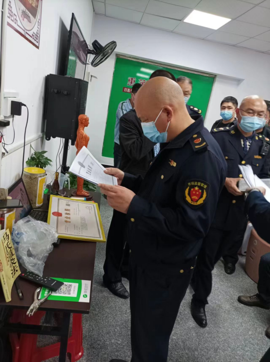 执法人员突击对五里菜市场旁商业大楼二楼、伟业东街,两处涉嫌疫情期间非法扎堆的会议营销行为进行现场检查。对不理解执法行动的老人进行文明劝解,并对经营户和房东老板未报备召集集会的行为进行警告,有力维护市场秩序,坚决守护人民利益。