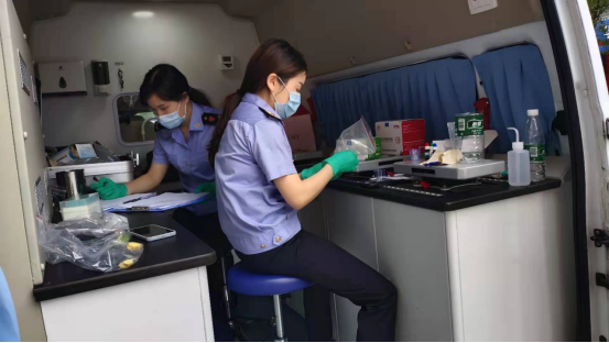 为保障广大师生考试期间饮食安全,会考期间,临湘市市场监督管理局检验检测中心开启护考模式,充分利用食品快检车流动快速检测室的优势,检测车进入考点食堂和供餐单位,现场对采购使用的面粉、食用油、蔬菜、肉类等食品和餐用具进行抽样快检,做到每日每餐必查必检。