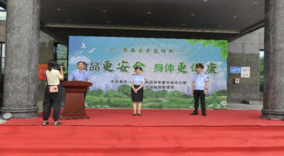 会前,全体参会人员在市市场监管局前广场集合参加食品安全宣传周启动仪式,仪式由市食安办副主任、市市场监管局局长方虹主持,副市长黎建平致词并宣布活动正式开始。