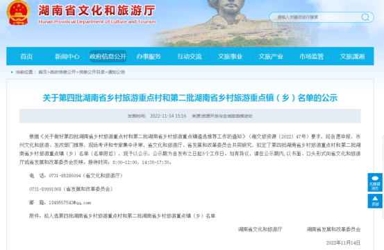 11月14日,湖南省文化和旅游厅、湖南省发展和改革委员会公布了第四批湖南省乡村旅游重点村和第二批湖南省乡村旅游重点镇(乡)名单,我市羊楼司镇被列入,是此次岳阳地区唯一一个榜上有名的乡村旅游重点镇。