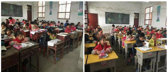 几块看不出原色的木板,拼在一起,因为长时间的摩擦,木板原本的纹理被凸现出来,用手抚摸,犹如小山丘般起伏,右下角处还露出一个大洞,孩子们每天就是在这样的课桌上写字。当孩子们再次走进摆放好新课桌的教室时,整个学校沸腾了……“这桌真漂亮,没有凹凸不平,也没有钉子。”“你看,这椅子也不会摇摇晃晃的,我再也不用担心上课时不小心跌倒了”孩子们个个喜笑颜开,争先恐后的跑到自己的座位上,轻轻地抚摸着自己的新课桌椅。