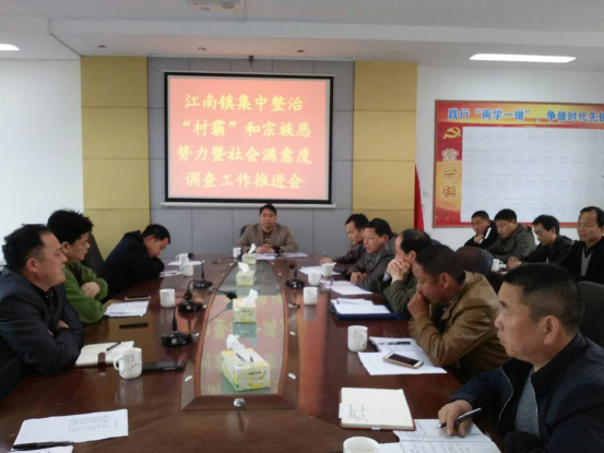 为强力推进临湘市集中整治“村霸”及宗族恶势力专项行动,江南镇4月7日上午以净化社会环境,提高群众满意度为主题,召开打击整治“村霸”及宗族恶势力专题会议。司法、派出、综治办全体人员及村(社区)书记、治调主任参会。