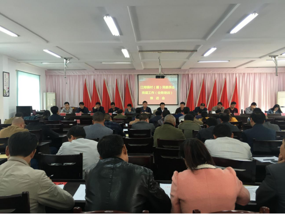 4月17日上午,江南镇召开村(居)民委员会换届工作(业务培训)推进会,全体党政领导、机关干部、村(社区)书记、主任、组织委员、各村办点干部参会。